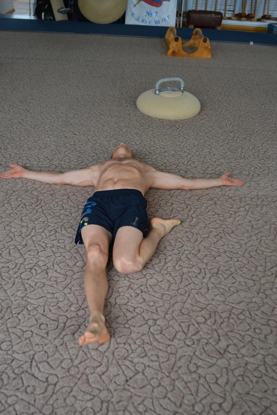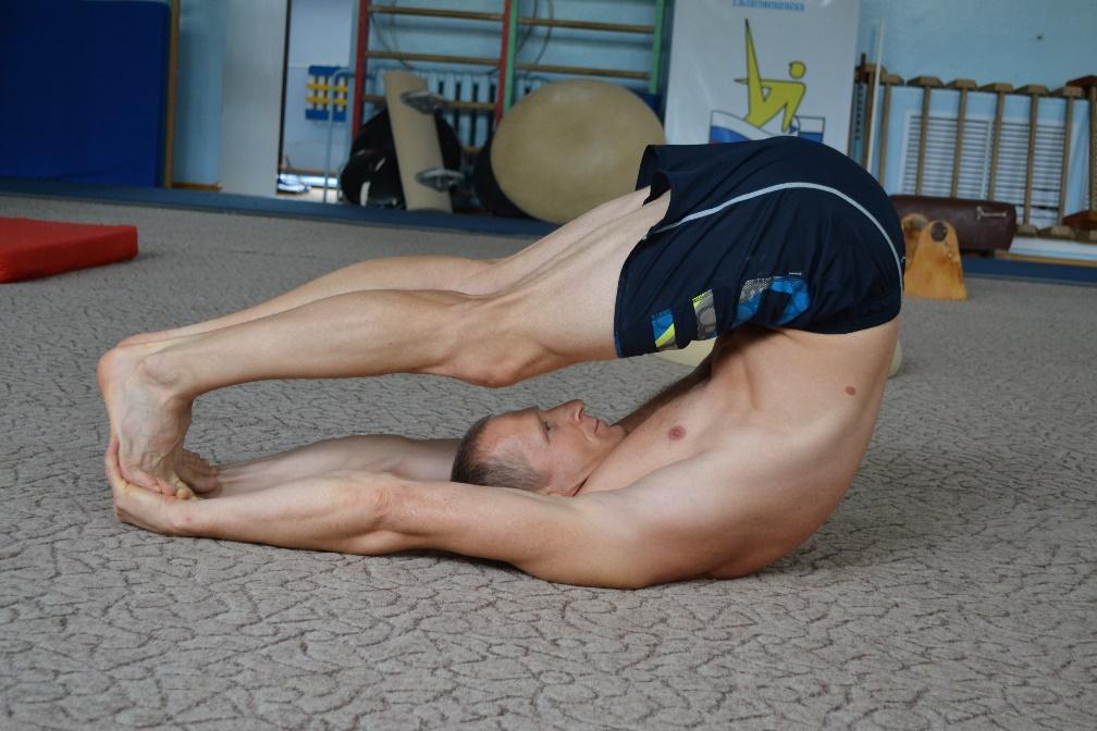 Цел: подобряване на специалната гъвкавост на тазобедрените и раменните стави, кръстният и гръдния отдели на гръбначният стълб на разтягане и эластичността на мускулите на предното бедро.